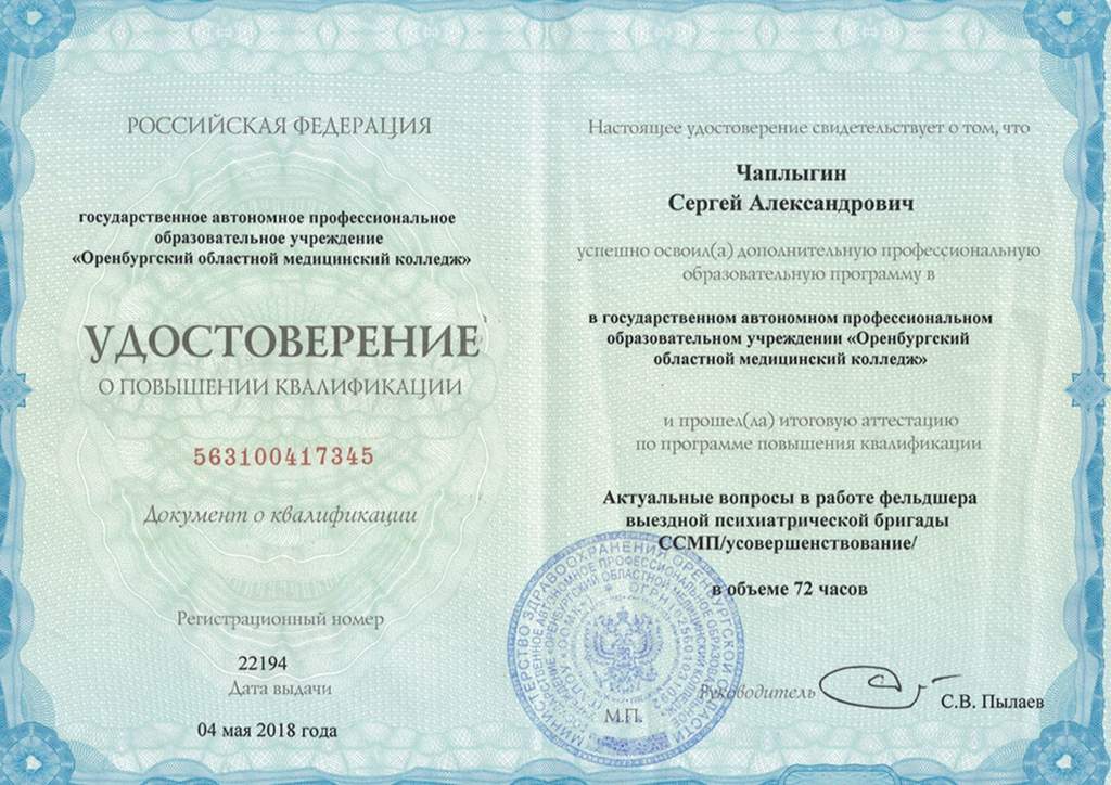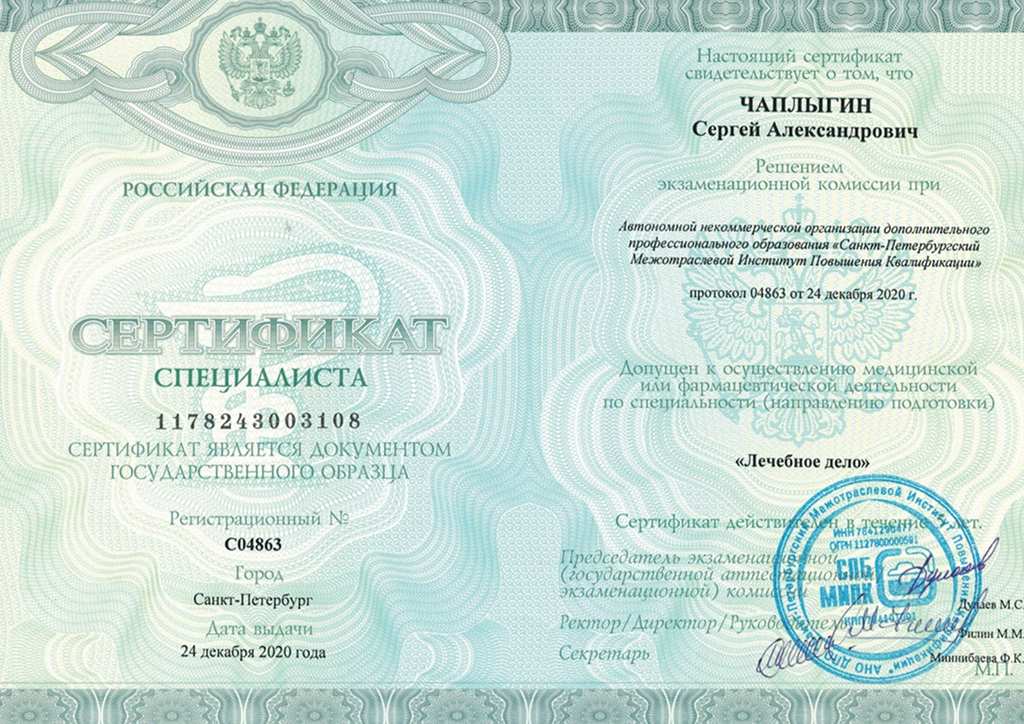 Фотография врача Чаплыгина Сергея Александровича